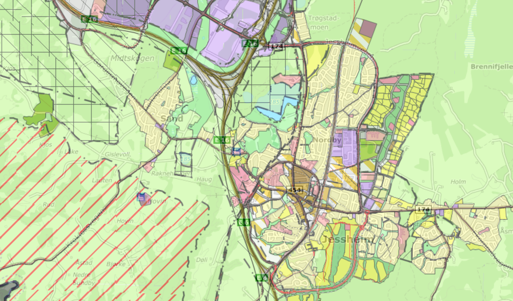 Her finner du et planregister som gir innsyn i hvordan arealene i kommunen kan benyttes. Kommuneplan, reguleringsplaner, m.fl. Her vises både gjeldende planer og planer under arbeid. Du finner opplysninger om planens status i planprosessen, samt aktuelle plandokumenter som bestemmelser og plankart.