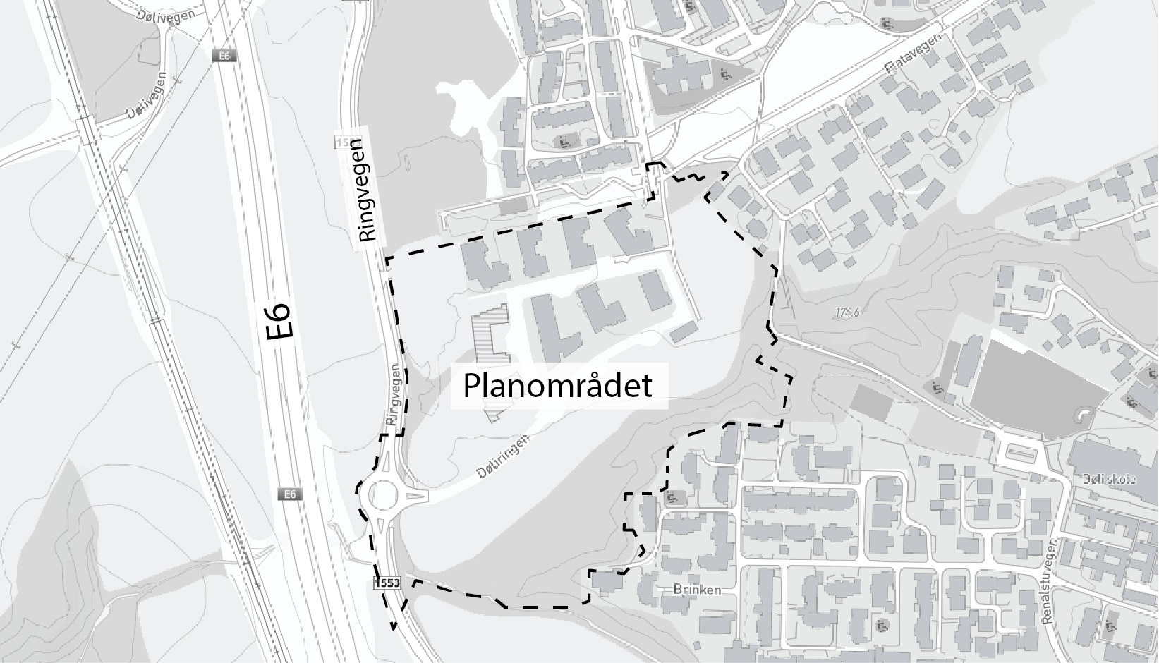 Planområdets beliggenhet framgår av vedlagt kartutsnitt.